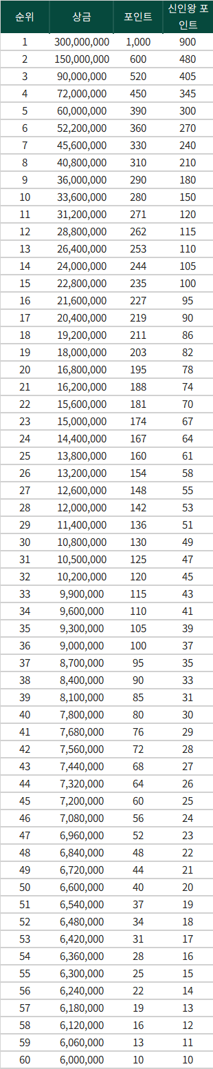 | 총상금/우승상금 | 15억 원 / 3억 원 |