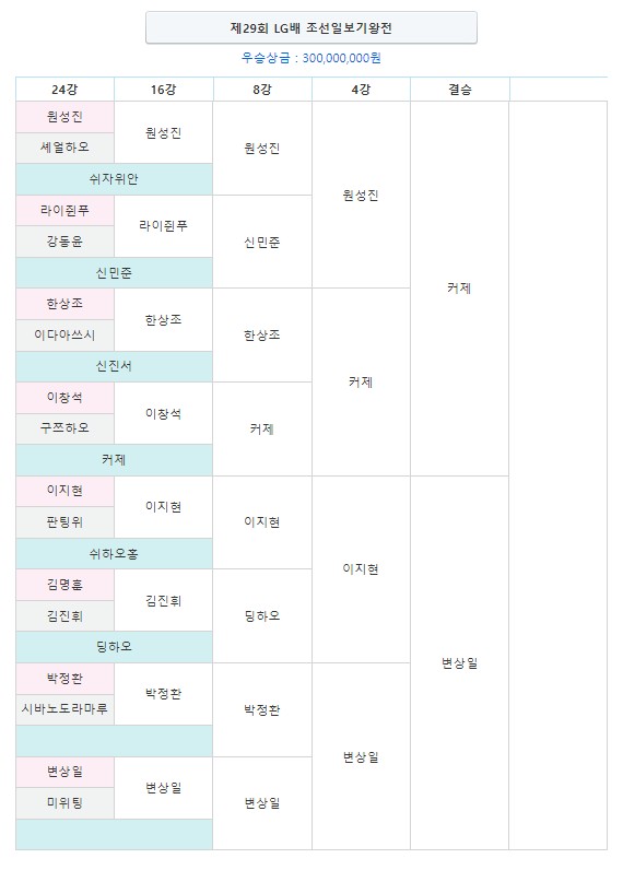 안녕하세요! 스포마인드입니다. 바둑 팬 여러분, 제29회 LG배 조선일보 기왕전에서 드디어 결승 진출자가 확정되었어요!
