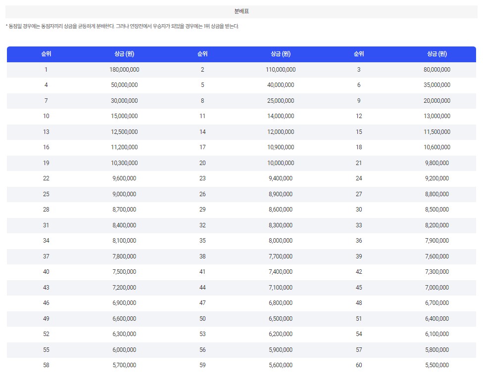 | 상금 | 총상금 10억 원, 우승상금 1억 8천만 원 (순위별 상금 정보) |